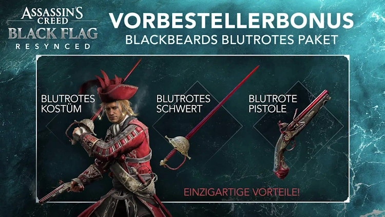 Vorbesteller*innen erhalten Bonus-Inhalte rund um Blackbeard, darunter kosmetische Items und zusätzliche Ausrüstung. Für Sammler*innen wird außerdem eine umfangreiche Collector’s Edition mit Statue, Steelbook und weiteren Extras angeboten.