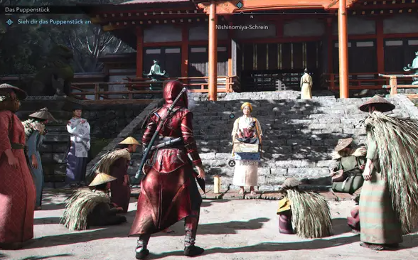 Alles beginnt in eurem Versteck: Auf dem Vorhof trefft ihr Hattori Hanzous Vertraute, die euch von einem Puppenspiel berichten. Dieses soll Hinweise auf Tsuyu, Naoes Mutter, liefern.