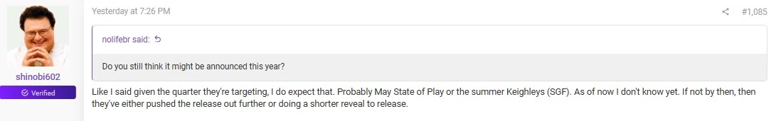 Laut shinobi602 könnte dieser Zeitrahmen jedoch zu pessimistisch angesetzt sein. Seinen Aussagen zufolge sei eine Veröffentlichung deutlich früher denkbar - vorausgesetzt, es kommt intern nicht zu Verschiebungen oder strategischen Änderungen.