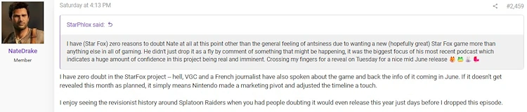 „Ich habe keinerlei Zweifel an dem Star-Fox-Projekt - selbst VGC und ein französischer Journalist haben darüber gesprochen und bestätigen, dass es im Juni erscheinen soll.“
