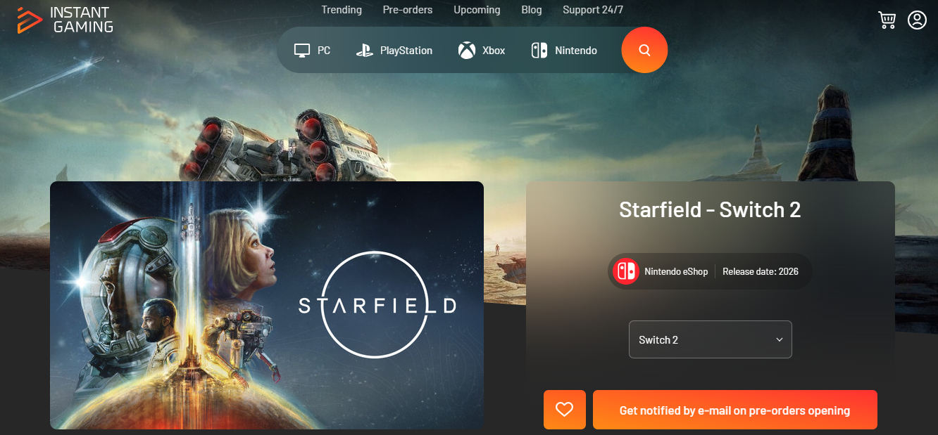 Bereits im August heizte der Leaker NateTheHate die Gerüchteküche an und behauptete, dass Starfield 2026 für Switch 2 erscheinen soll. Nun tauchte das Spiel auf der Plattform Instant Gaming auf, mit einem nicht näher bestimmten Release-Datum.