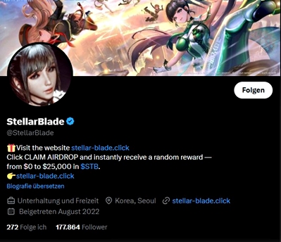 Plötzlich prangten auf dem offiziellen X-Account kryptisch klingende Posts über eine angebliche Kryptowährung namens „Stellar Blade Coin“ - garniert mit vollmundigen Gewinnversprechen und Bildern aus dem Spiel, als hätte Eve persönlich das nächste Bitcoin erfunden.