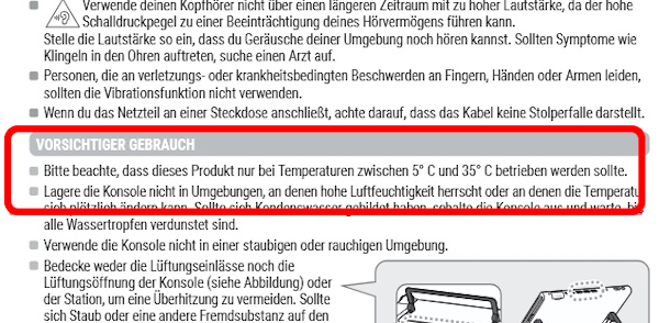 Auch die Bedienungsanleitung der Swich 2 klärt über die Temperaturen auf