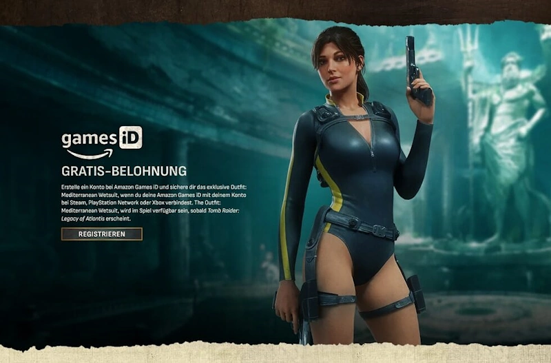 Für Tomb Raider: Legacy of Atlantis wurde ein exklusives Bonus-Outfit enthüllt. Spieler erhalten den „Mediterranean Wetsuit“ für Lara Croft kostenlos, wenn sie ihr Spielkonto mit einer Amazon Games iD verknüpfen.