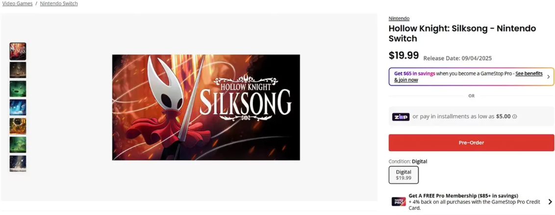 Obwohl der Release-Termin nun feststeht, hatte Team Cherry bisher keine Angaben zum Preis gemacht. Hier kommt ein aktuelles GameStop-Listing ins Spiel: