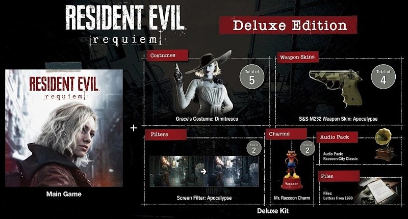 Für die Nintendo Switch 2 erscheint das „Generational Pack“, das Resident Evil 7–9 in einer Box vereint. Zum Launch gibt’s zudem einen Sonder-Controller im Requiem-Design, und im Sommer 2026 folgt eine amiibo-Figur von Grace Ashcroft.