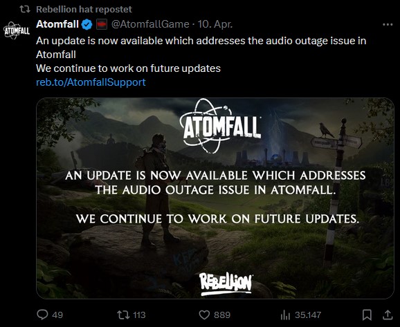 Spieler*innen leiden seit Release unter einem Audiofehler im Survival-Game Atomfall, der dazu führt, dass ab und zu der Ton komplett ausfällt.