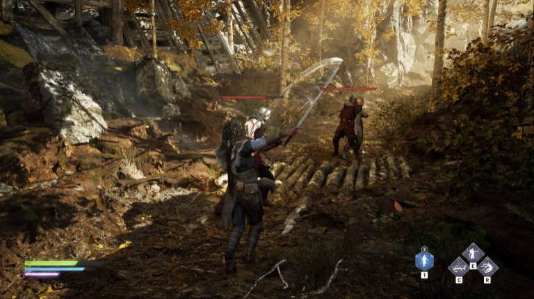 Die Kämpfe erinnern an einen wilden Mix bekannter Systeme: wuchtige Schwertschläge à la Flintlock, kombiniert mit Magie, die stark an die Macht aus Star Wars erinnert - Gegner zusammenstoßen lassen, sie von Klippen pusten oder Felsbrocken auf sie regnen lassen. Besonders charmant: Finisher mit plötzlicher Slow-Motion-Kamera. Das Macht (extra groß geschrieben) schon Spaß.