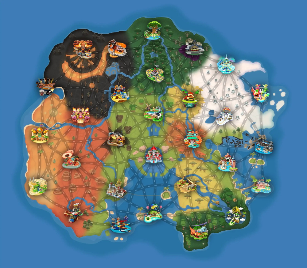 So schaut die Weltkarte in "Mario Kart World" aus. Strecken und Regionen in der Übersicht.