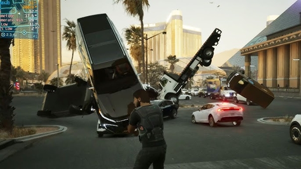 Ein besonders denkwürdiger Clip des Nutzers NikTekOfficial zeigt eine surreale Szene: Zivilisten, die wie untote Ballerinas durch die Luft gleiten, Fahrzeuge, die ineinander verschmelzen oder katapultartig durch die Gegend fliegen – Fast & Furious trifft LSD.