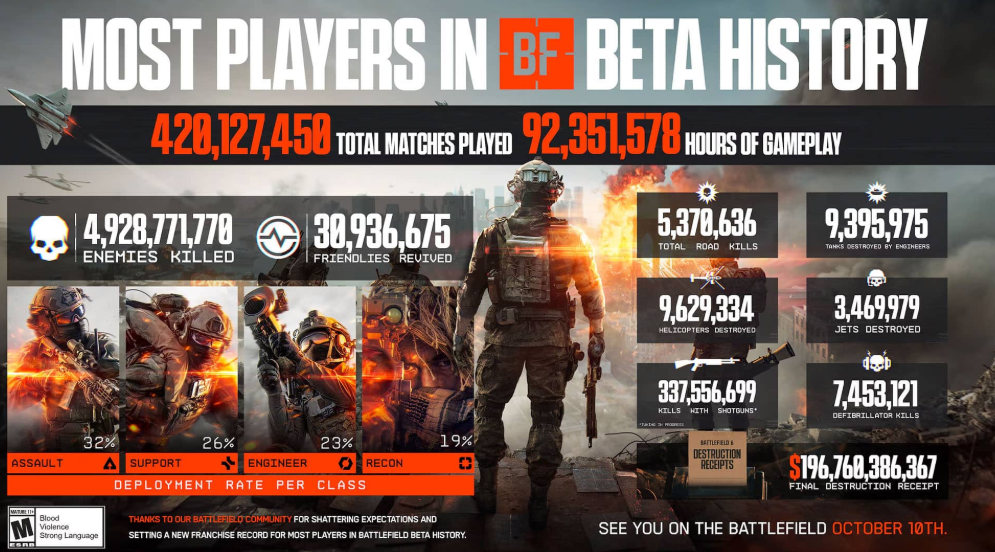 Die Open-Beta von Battlefield 6 hat bei Electronic Arts und DICE für Begeisterung gesorgt: Vorbestellungen schossen in die Höhe, die Aktie erreichte ein neues Allzeithoch, und weltweit wurden mehr als 420 Millionen Partien gespielt. Das entspricht über 92 Millionen Stunden Spielzeit - genug, um einen durchschnittlichen Spieler in die Knie zu zwingen.