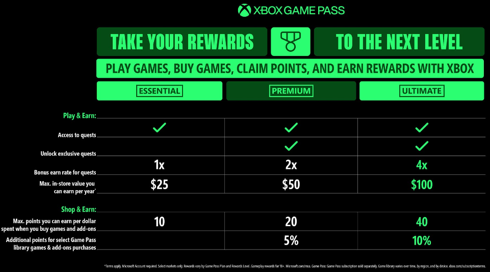 „Mit unserem aufgewerteten Rewards-Programm können Spieler*innen bis zu 30 Prozent Mehrwert auf ausgewählte Game Pass-Spiele erhalten, mit 4-fachen Punkten beim Kauf von Spielen und Add-ons, 10 Prozent Rückvergütung in Punkten auf ausgewählte Game Pass-Bibliothekstitel und Add-ons sowie bis zu 20 Prozent Rabatt auf ausgewählte Game Pass-Spiele“, erklärt Microsoft.