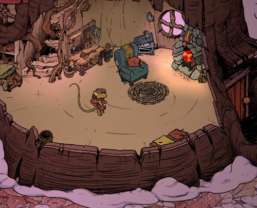 In Winter Burrow schlüpft ihr in die kleinen Schuhe einer Maus, die nach Jahren in der großen Stadt zurück in die ländliche Heimat kehrt – nur um festzustellen, dass ihr einst gemütlicher Bau eine Ruine ist. Tante weg, Kamin kalt, Vorratskammer leer. Zeit, den Pullover hochzukrempeln!