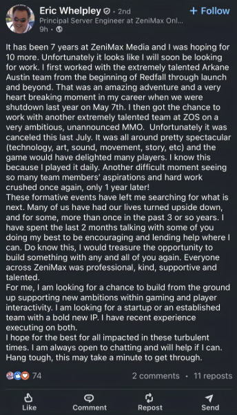 Die internen Umstrukturierungen bei Microsoft führten zu rund 9.000 Entlassungen, was etwa jeden 25. Entwicklungsmitarbeiter im Konzern betraf. ZeniMax war davon stark betroffen, und neben Project Blackbird verlor das Team damit einen weiteren Hoffnungsträger nach der Einstellung von Redfall und der Schließung von Arkane Austin.